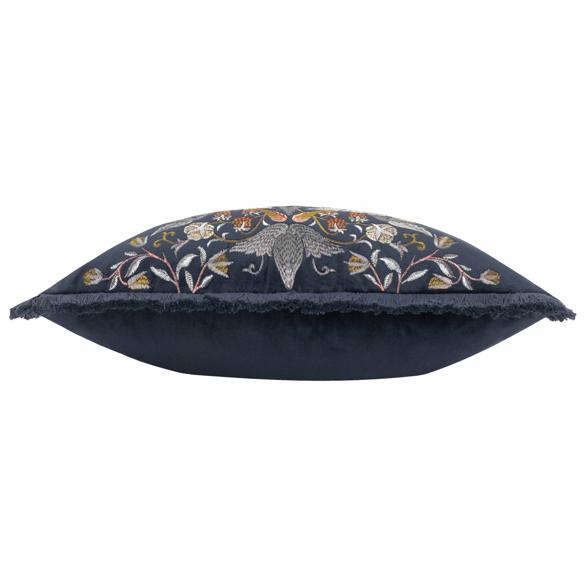 The Strawberry Thief cushion features one of Morris & Co.'s most iconic designs, beautifully embroidered onto luxurious matte velvet fabric. This jacquard interpretation retains the enchanting detail of the original, showcasing bold and captivating imagery that has stolen hearts for over a century.